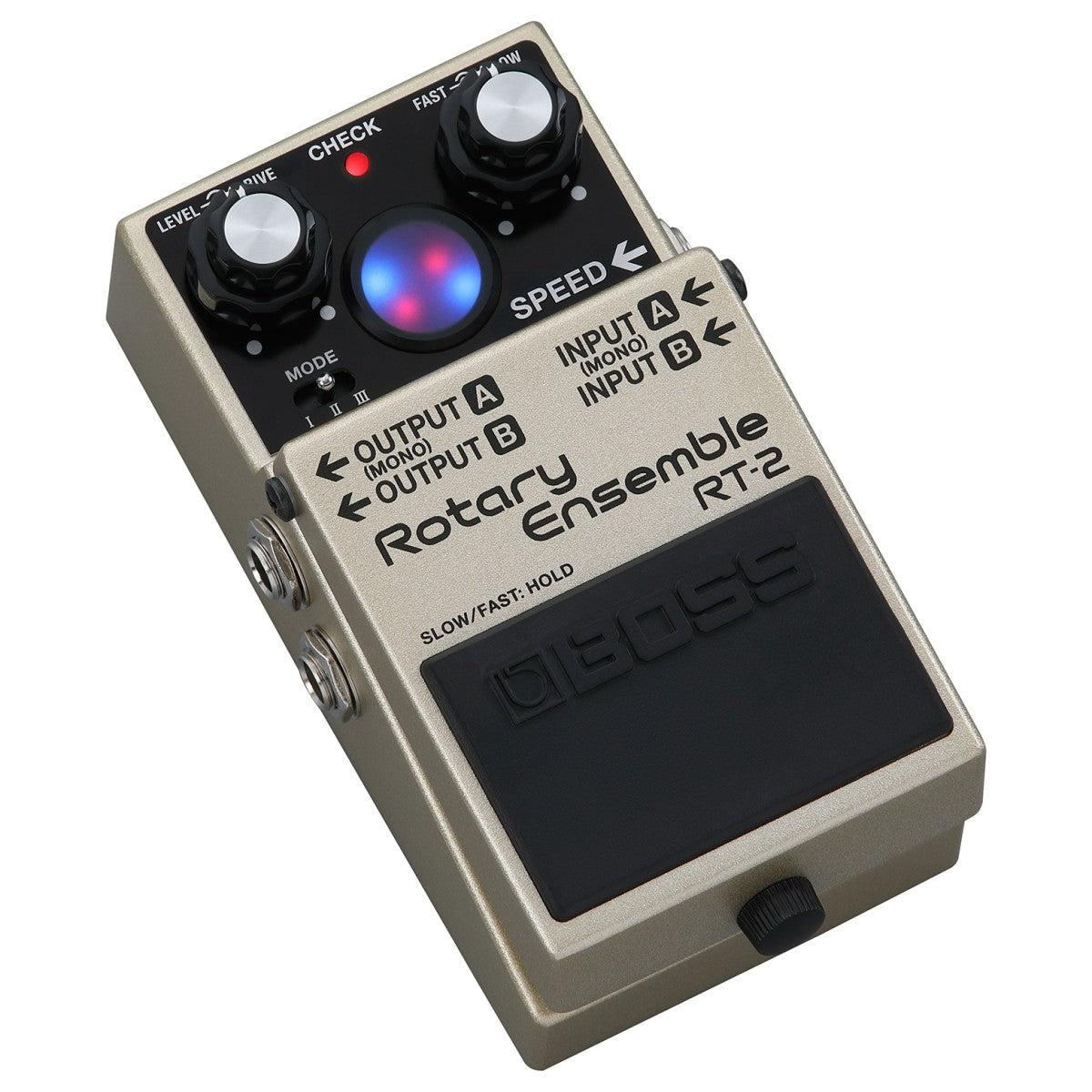 Rotary speaker cabinets sound amazing, but their size and weight make them impractical for anyone but the most dedicated vintage enthusiasts. Powered by the latest BOSS advancements, the RT-2 Rotary Ensemble distills this expressive spatial effect into a footprint that’s easy to integrate into every setup. This powerhouse pedal authentically recreates the complex sonic magic of its inspiration, supported by three sound modes, deep tonal shaping, and advanced operation with the onboard pedal switch and external control.
